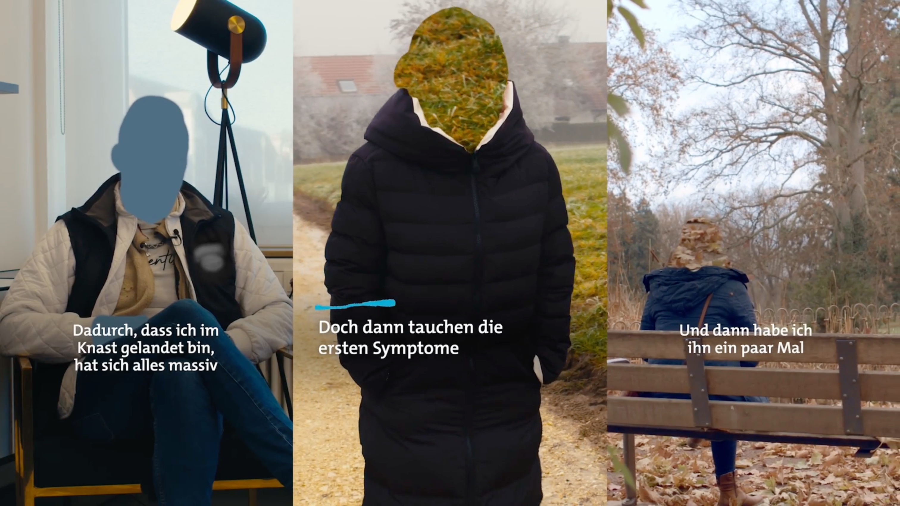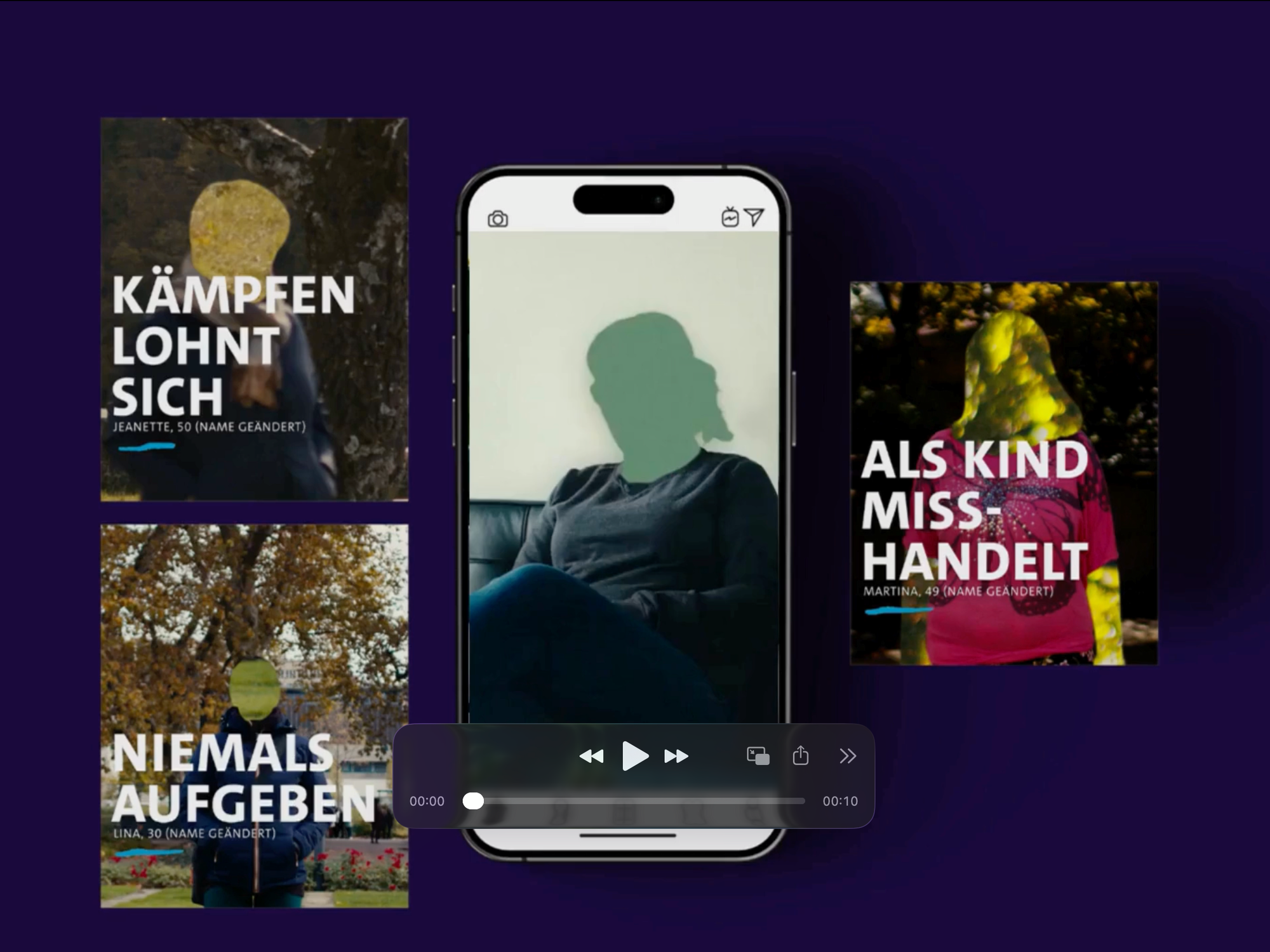 Im Schnitt zeigte sich, wie sehr die Geschichten von Mimik leben. Ohne Gesicht und eigene Stimme wurde die Anonymisierung zur Herausforderung: Deshalb entwickelten wir einen eigenen Illustrationsstil mit passenden Animationen, der die Gedanken und Stimmungen aufgreift, ohne Identität preiszugeben. So wurde aus der Einschränkung eine gestalterische Stärke und aus einem anonymen Format ein persönliches.