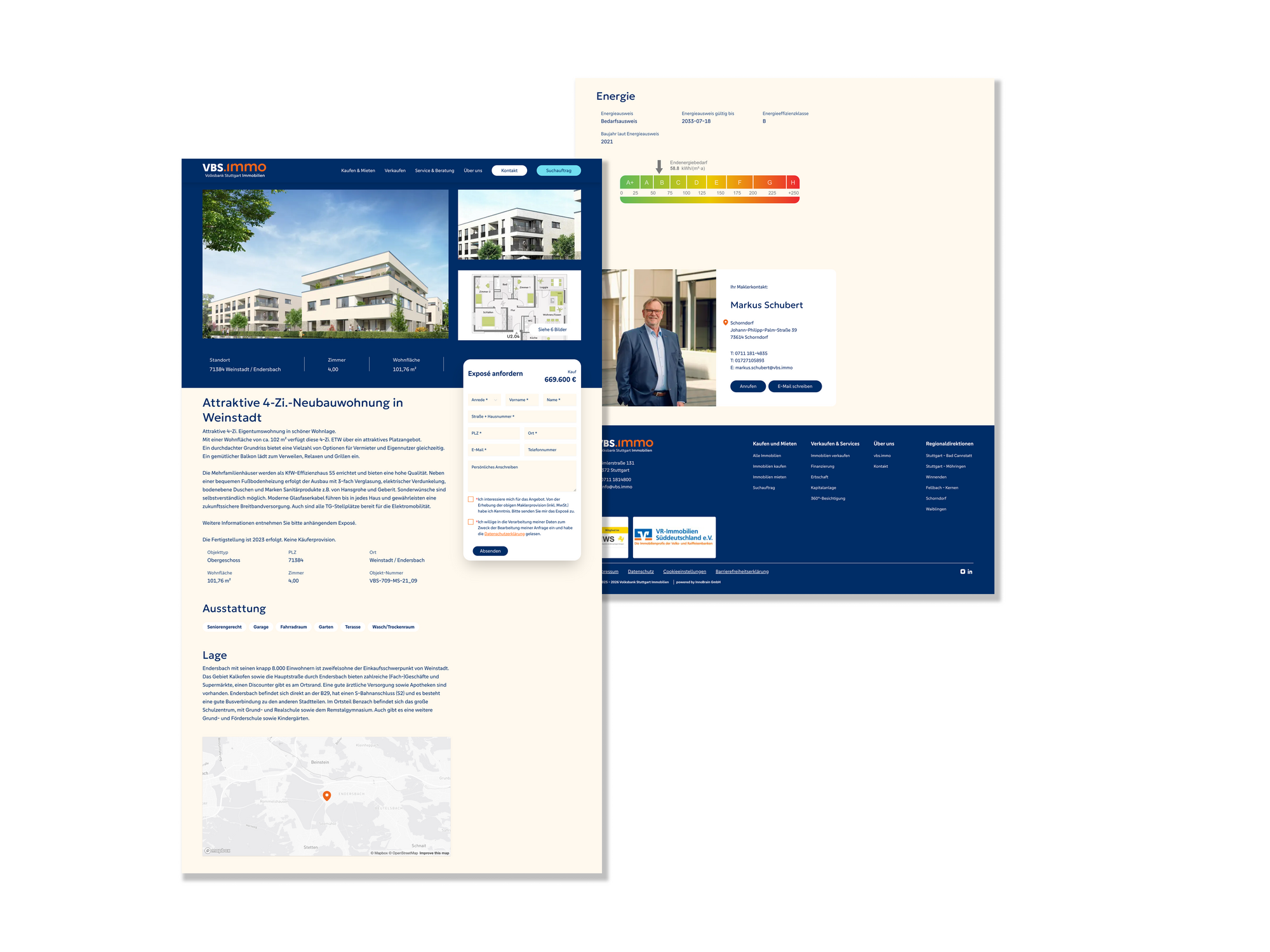 Modern und dynamisch präsentiert sich die vbs.immo künftig auch digital. Die neue Website überzeugt mit neuer Bildsprache, einem strukturierten Aufbau, der alle Aspekte der Barrierefreiheit berücksichtigt, einer neuen nutzerfreundlichen Navigation und einer menschlicheren und nahbaren Tonalität unter Berücksichtigung aller relevanten SEO-Aspekte. Zusätzlich verliehen wir auch dem Social-Media-Auftritt mit Templates einen zeitgemäßeren Auftritt.