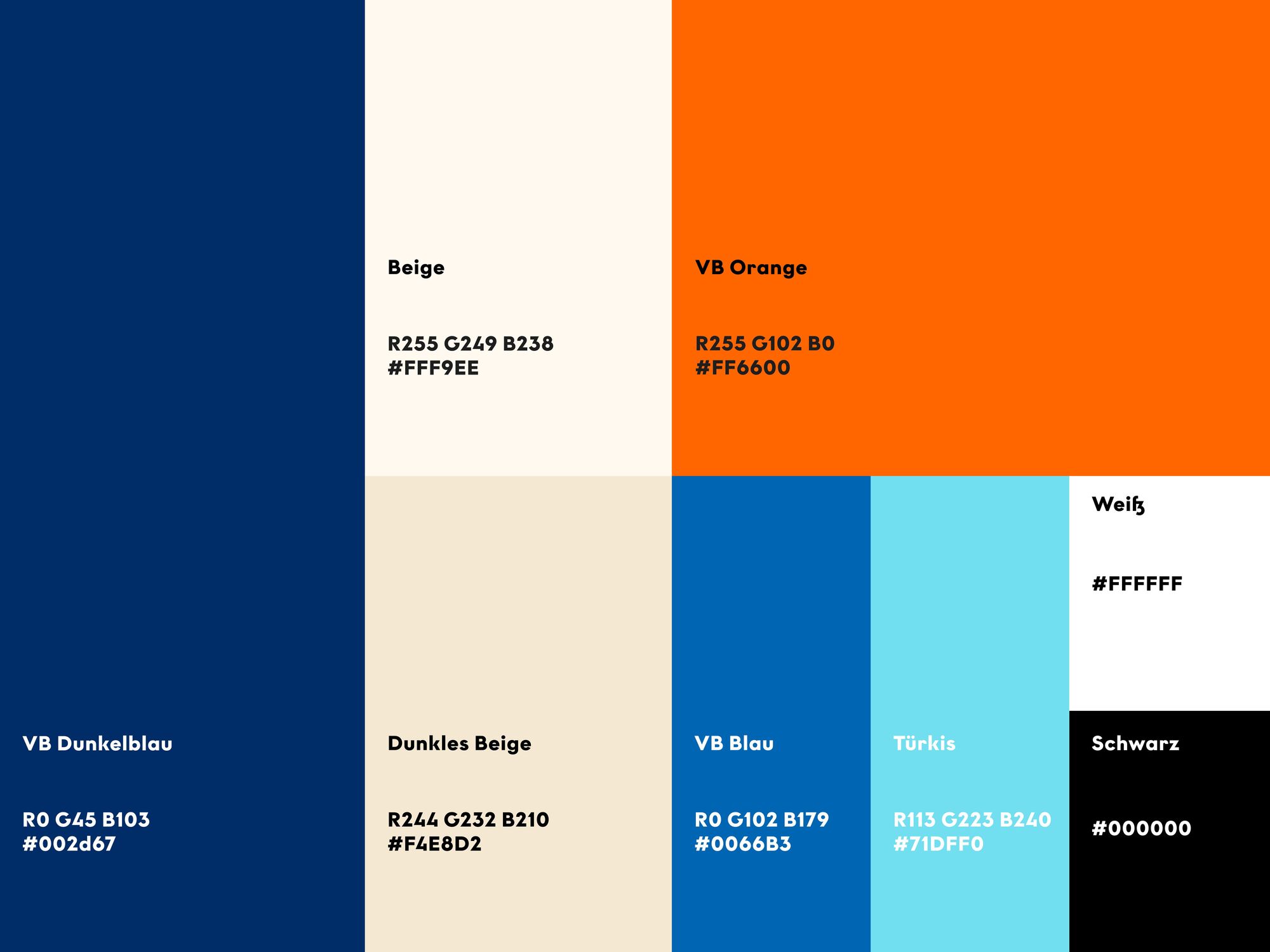 Neben einem deutlich authentischeren und menschlicheren Bildkonzept, wurden auch die Corporate-Farben behutsam weiterentwickelt. Eingesetzt wurden kräftigere Töne der beiden Hausfarben Blau und Orange sowie VR Ultramarin. So entstand ein moderner, professioneller Look, der zugleich mit einer warmen und emotionalen Bildwelt überzeugt und Mitarbeitende und die Region in den Fokus rückt.
