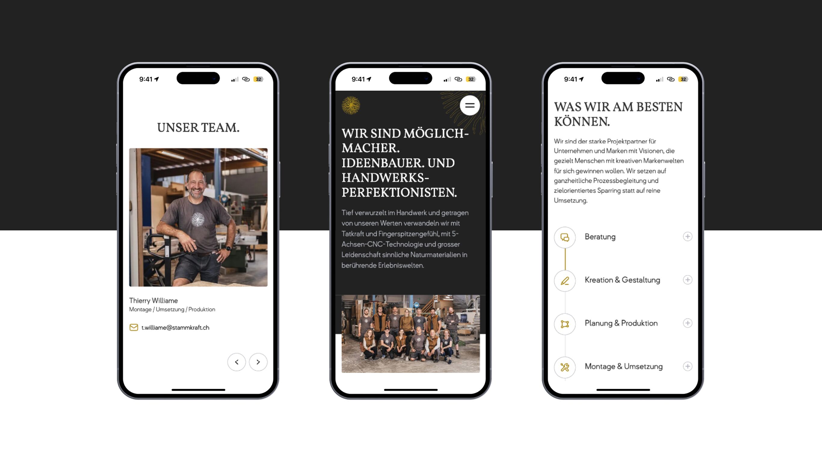 Unser Ziel war es, ein modernes Design zu kreieren, das mit der Spezialbau-Leidenschaft und Umsetzungsexpertise von Stammkraft harmoniert. Unser Fokus: schlichte Farben, edle Schrift und natürliche Materialien. All das haben wir nicht nur auf der Website erlebbar gemacht, sondern gemeinsam mit den Stammkraft-Möglichmachern auch in einem neuen Markenfilm zum Leben erweckt.
